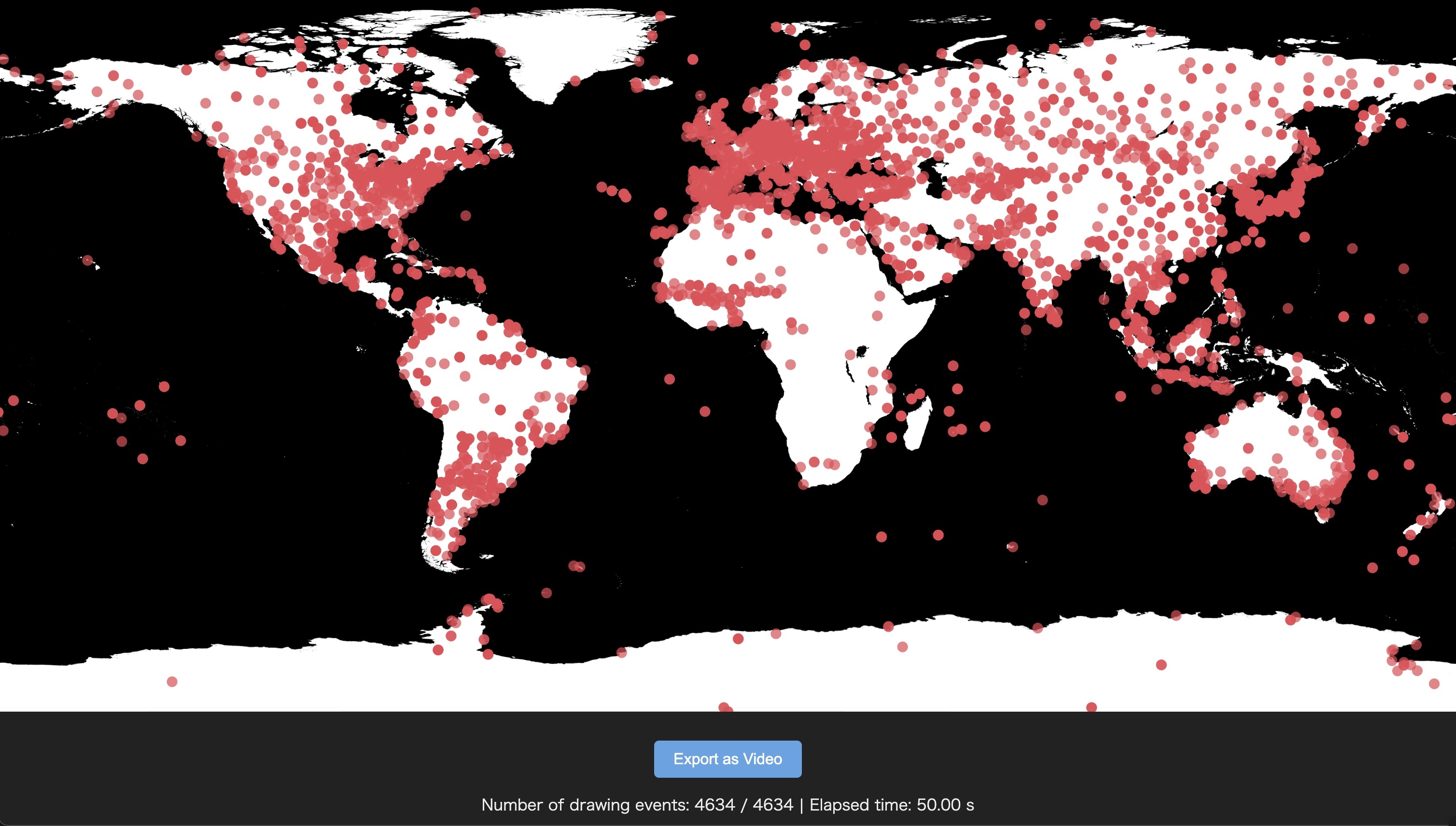 A video visualization that maps extreme weather event CSV data onto a world map. Users can view animated playback of historical weather events and export the visualization as MP4.